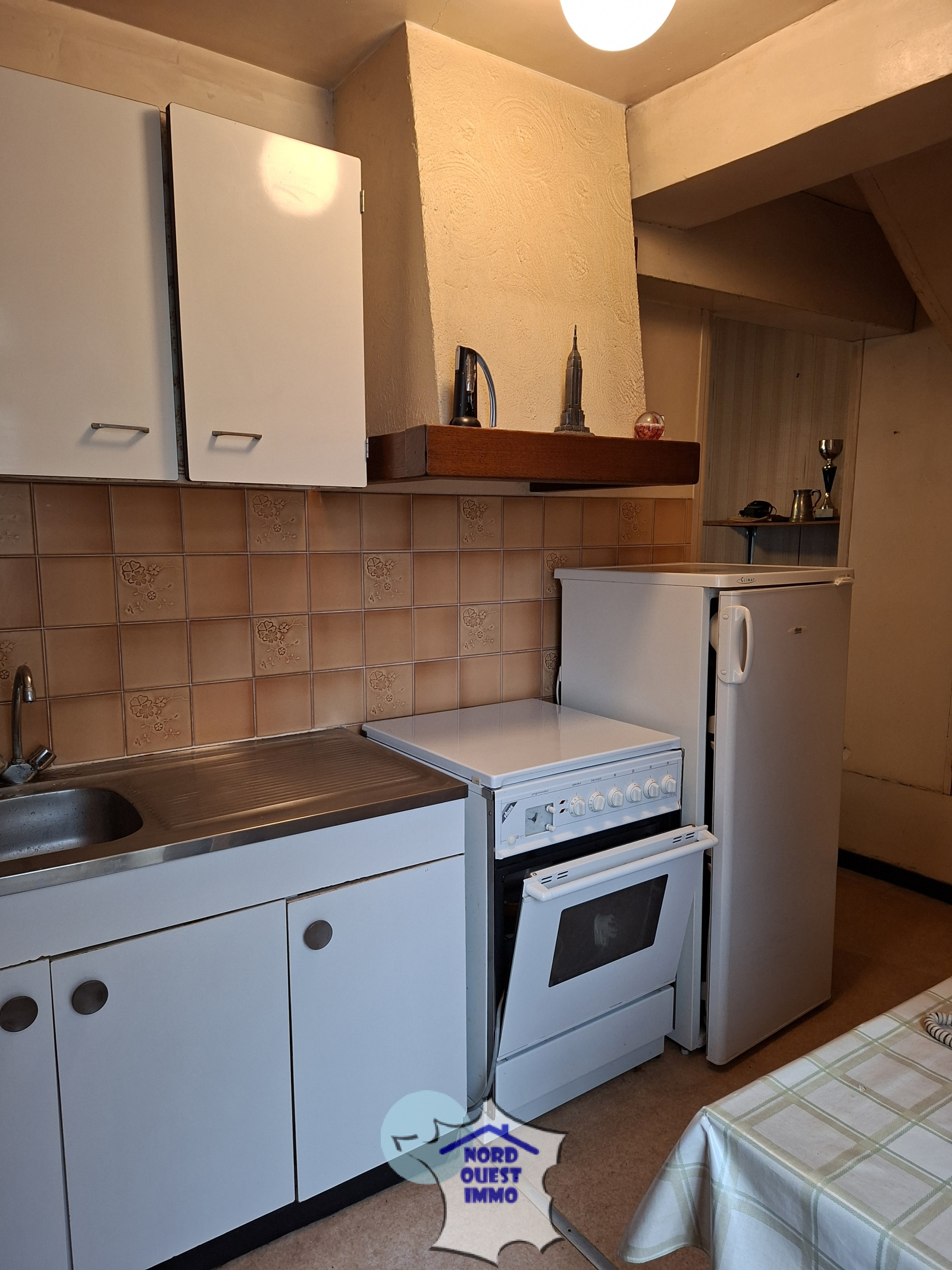 Maison de bourg de 50 m², comprenant au rdc : Une partie cuisine (4.15 m²) et un séjour de 12.36 m². A l'étage un palier et une chambre de presque 15 m² (wc séparés). Au 2 ème étage : une salle de bain avec wc, et une pièce de 7.11 m² ainsi qu'une petite partie grenier. Un terrain non attenant avec un garage en tôles. Ainsi qu'une cave non attenante.