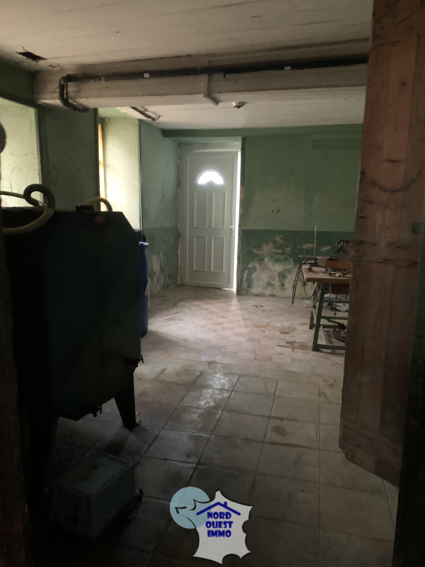 Partie basse rez- rue : trois pièces à rénover en état brut d'une surface totale de 60 m² dont une avec cheminée ouverte