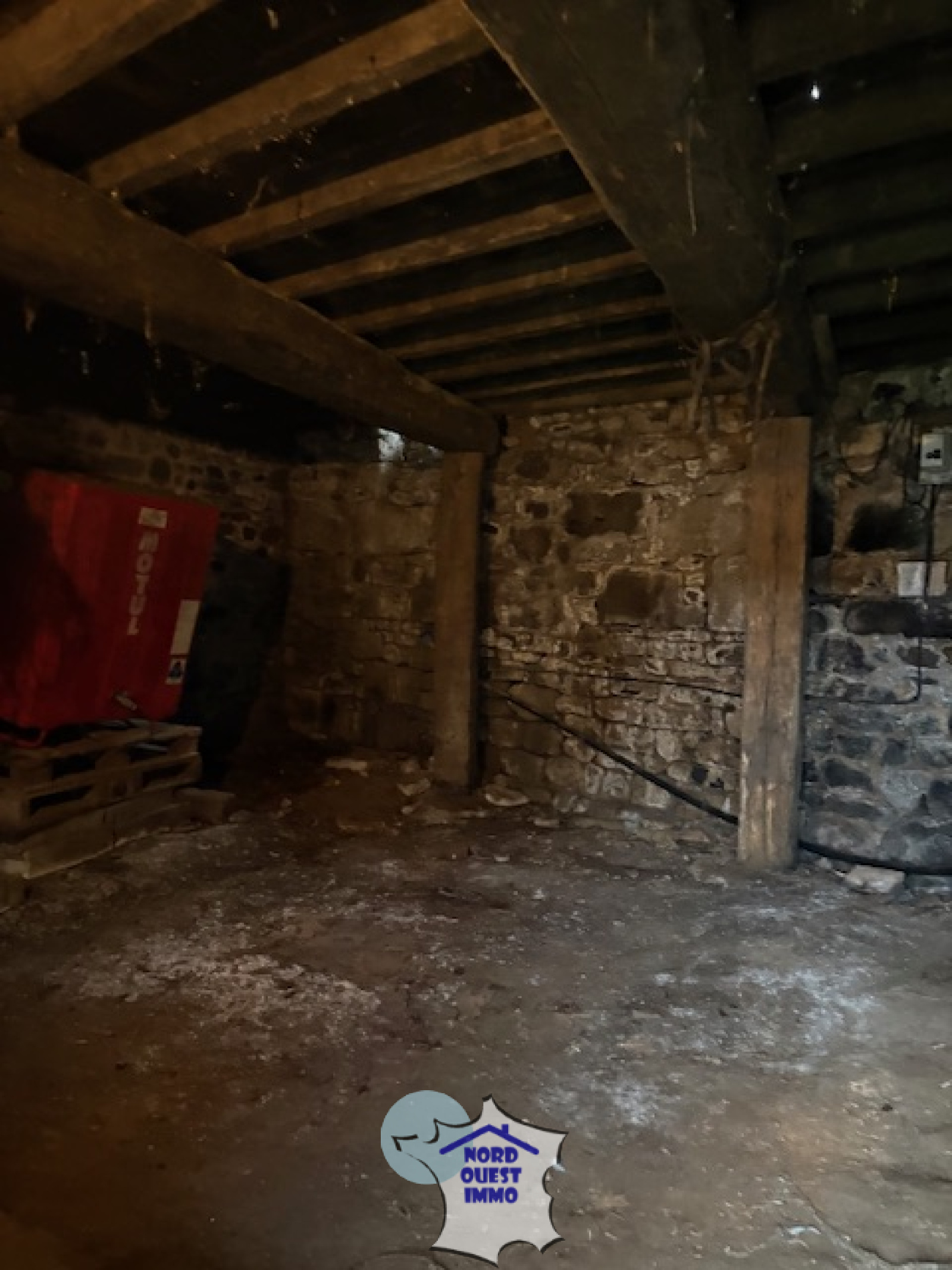 Autres bâtiments : une cave (33.50 m²), garage, une ancienne étable attenante à la maison (63 m² au sol avec grenier), un autre bâtiment (construit en parpaings de 57 m²), un hangar (50 m²).