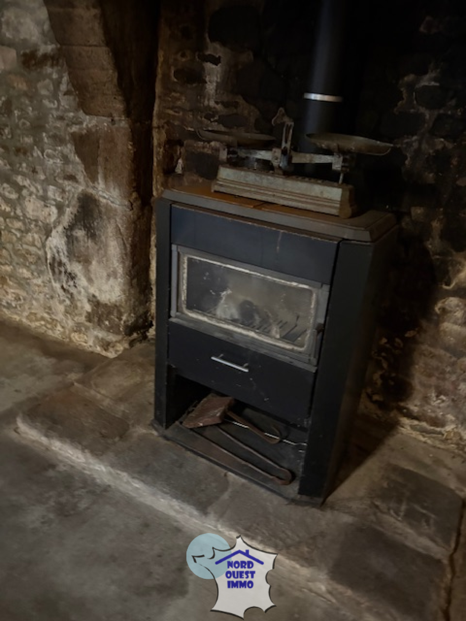- RDC : sas d'entrée (2.20 m²), cuisine aménagée (18.20 m²), salle à manger avec poêle à bois (34.15 m) salle d'eau (7.48 m²) avec wc.