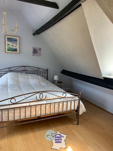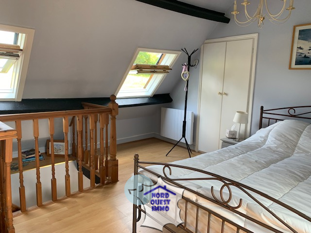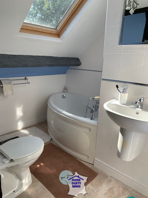 - Depuis le salon un accès distribue un palier de 0.78 m² et deux chambres dont une de 10 m² comportant un placard et un blacon vue sur la campagne et la deuxième de 16.9 m² comportant une suite avec une salle de bain (baignoire, lavabo, WC) et placard.