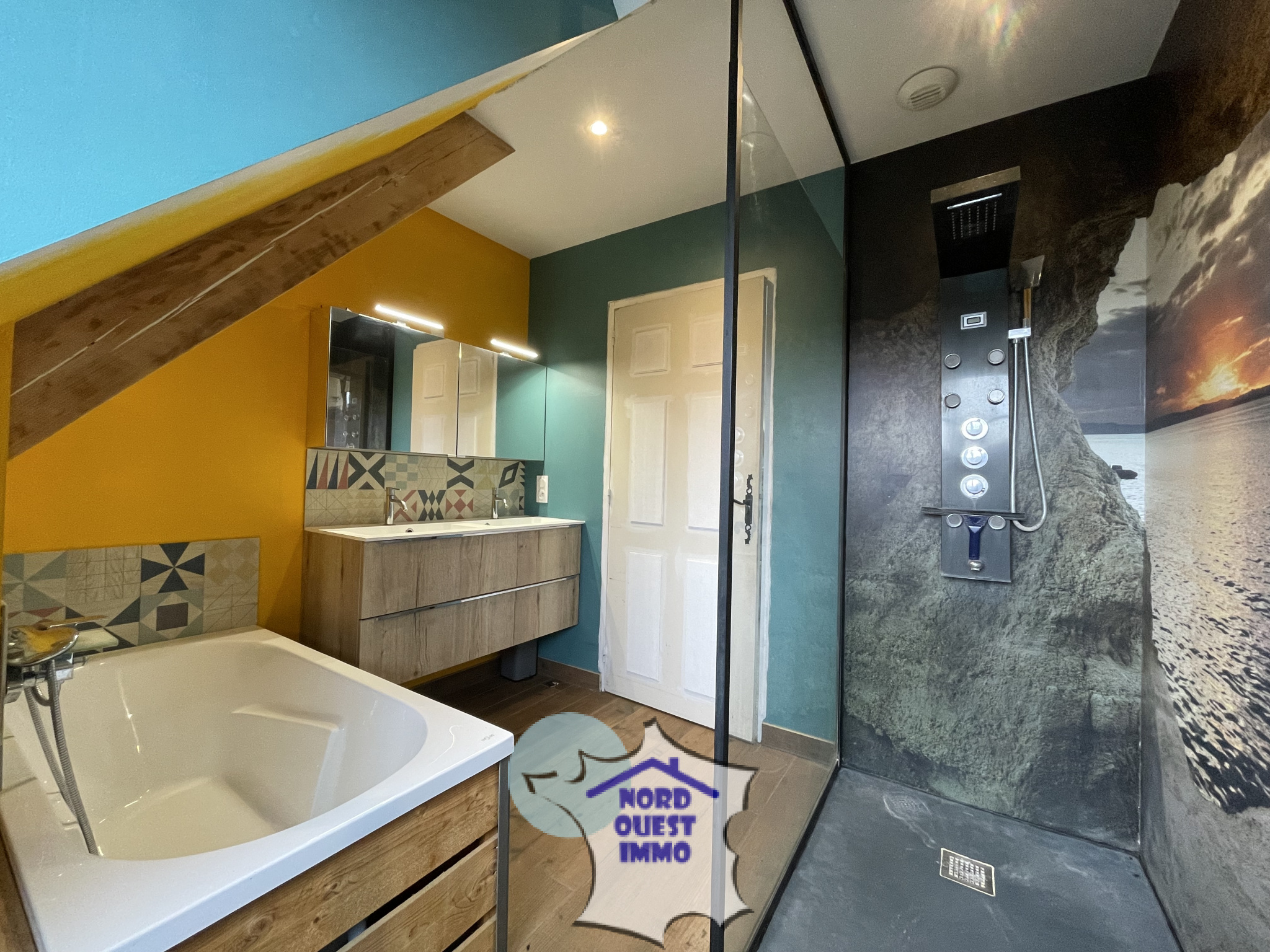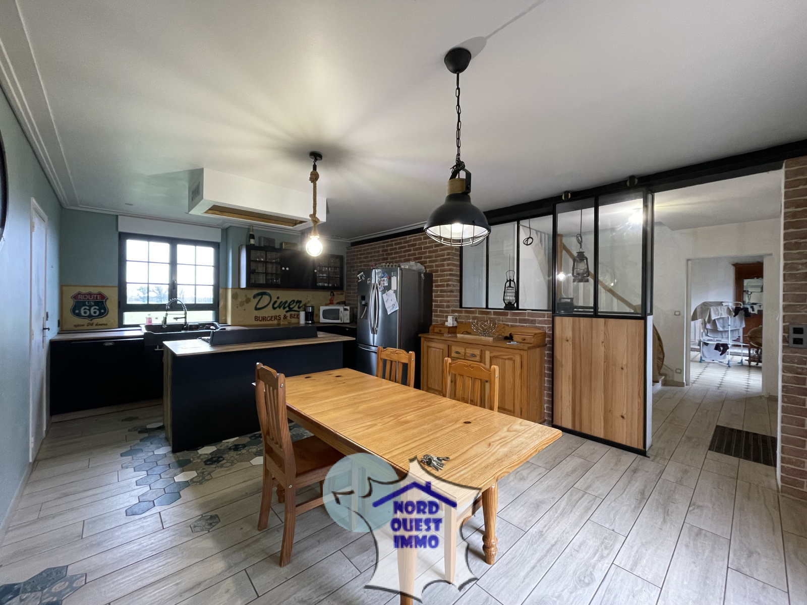 - Au rez-de-chaussée: une entrée (9.53m²), une cuisine aménagée-équipée avec ilot (25.36m²), un séjour avec cheminée insert (35.46m²), un wc, une buanderie (6.09m²) avec VMC double flux.