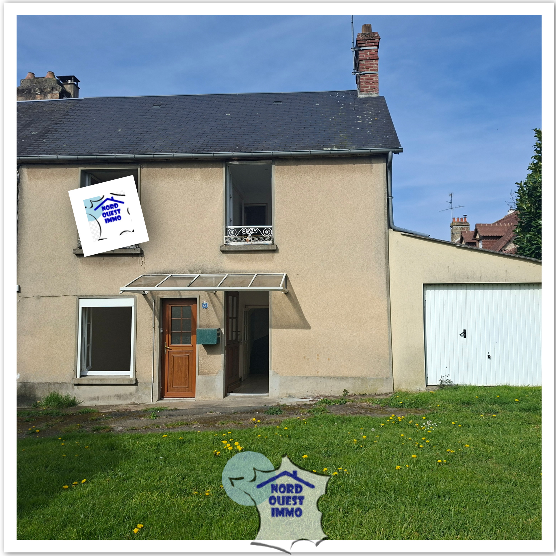 Maison de ville de 73,41 m², mitoyenne d'un coté, sur un terrain clos (318 m²). Chauffage au fioul, huisseries bois simples vitrages. Cuisine aménagée, équipée, séjour (20 m²), à l'étage 2 chambres en enfilade et une salle d'eau. Garage.