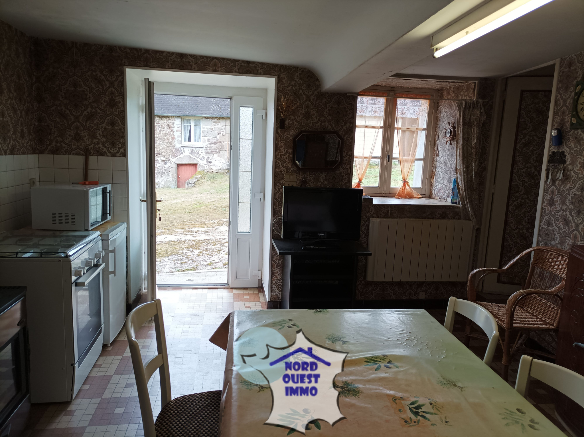 Belle maison de campagne en pierres, couverte en ardoises. Ce bien se compose d'une cuisine de plus de 18m², avec une pièce attenante (30 m²) qui offre un potentiel d'agrandissememnt. A l'étage 2 chambres et une grande pièce de 22.30m² avec cheminée, un escalier en pierres qui descend au jardin. Petite dépendance. Puits. Possibilité d'acquérir un peu plus de terrain, ainsi qu'un garage et une cave. Un assainissement est à prévoir.