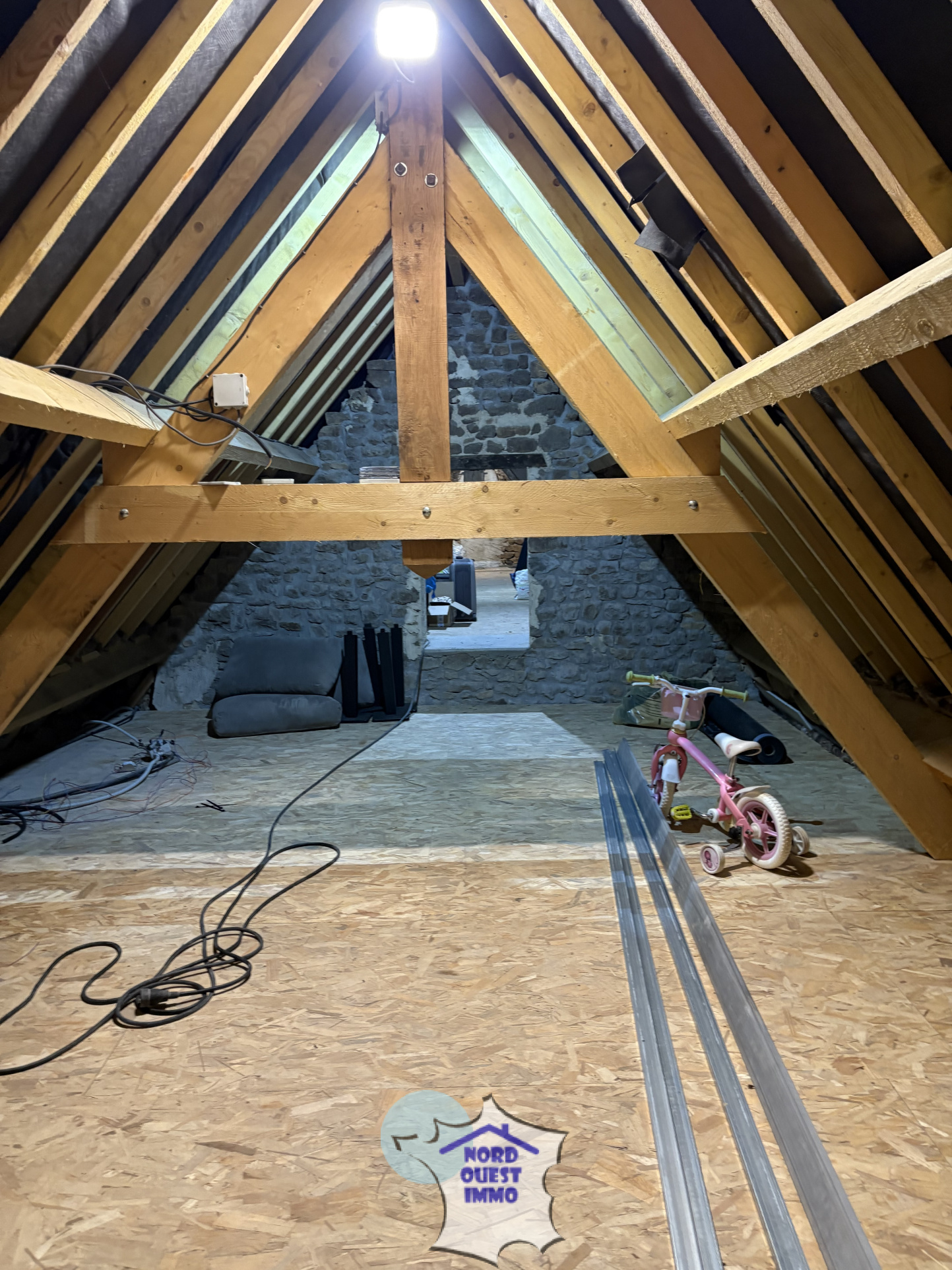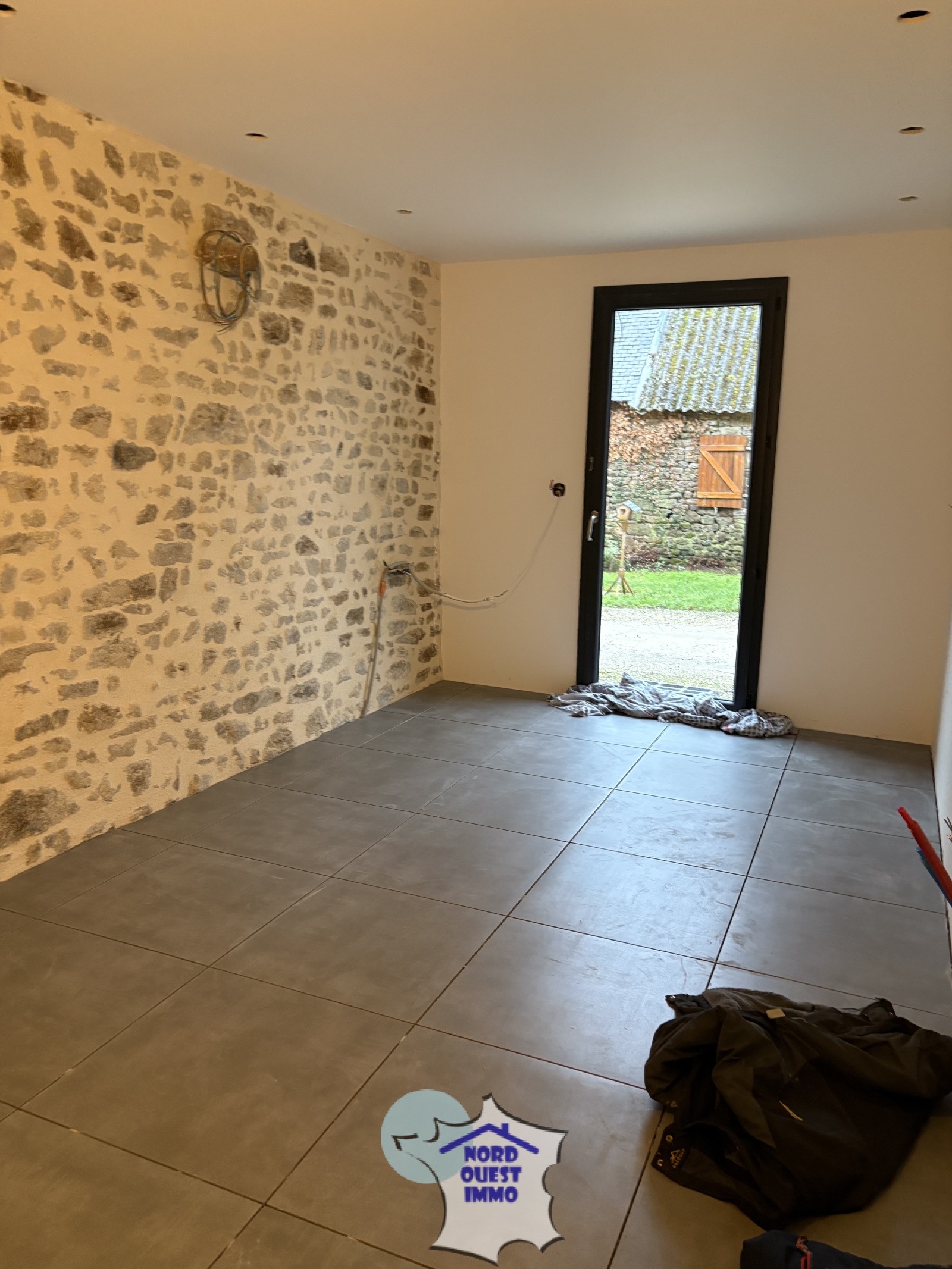 Deuxième partie à terminer (travaux commencés): - pièce (avec prédispo pour cuisine)(16.49 m²), un couloir(4.72 m²) et une pièce pour buanderie(19.61 m²), une pièce avec possibilité de créer une chambre(25 m²) et la suite poss de dressing-salle d'eau(21.50 m²).