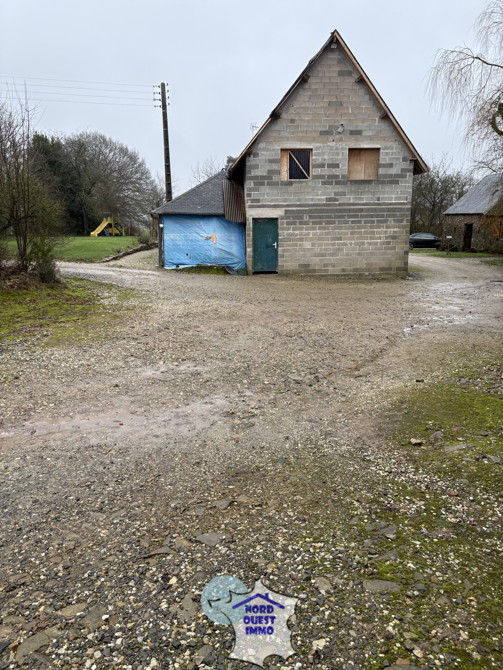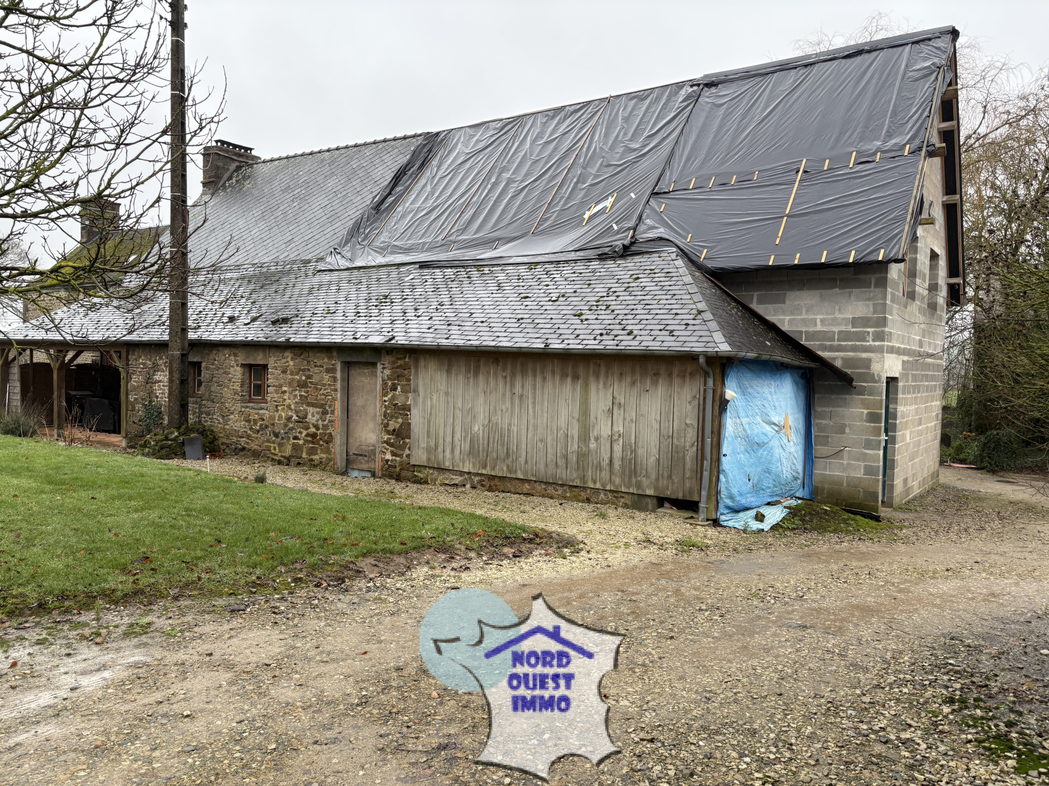 Couverture à l'arrière de la maison non terminée.