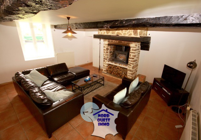 SECTEUR PASSAIS Longère construite en pierres et couverte en tuiles : RdC : Cuisine aménagée et équipée(30.42 m²) et séjour, salon avec cheminée ouverte(38.47 m²), couloir(3.26 m²), wc(1.27 m²), chambre ou autre salon(19.40 m²) et salle de bains(4.89 m²). Au premier étage : Couloir(14.55 m²) desservant quatre chambres(13.22 m², 11.22 m², 14.35 m² et 19.53 m², Salle d'eau(14.05 m²). Au second étage : pièce(23 m²). Partie couverte et fermée(28.23 m²). Dépendance en pierres(12 m²). Four à pain avec toiture refaite et four utilisable. Double garage(35 m²). Hangar(15 m²) et bûcher.
