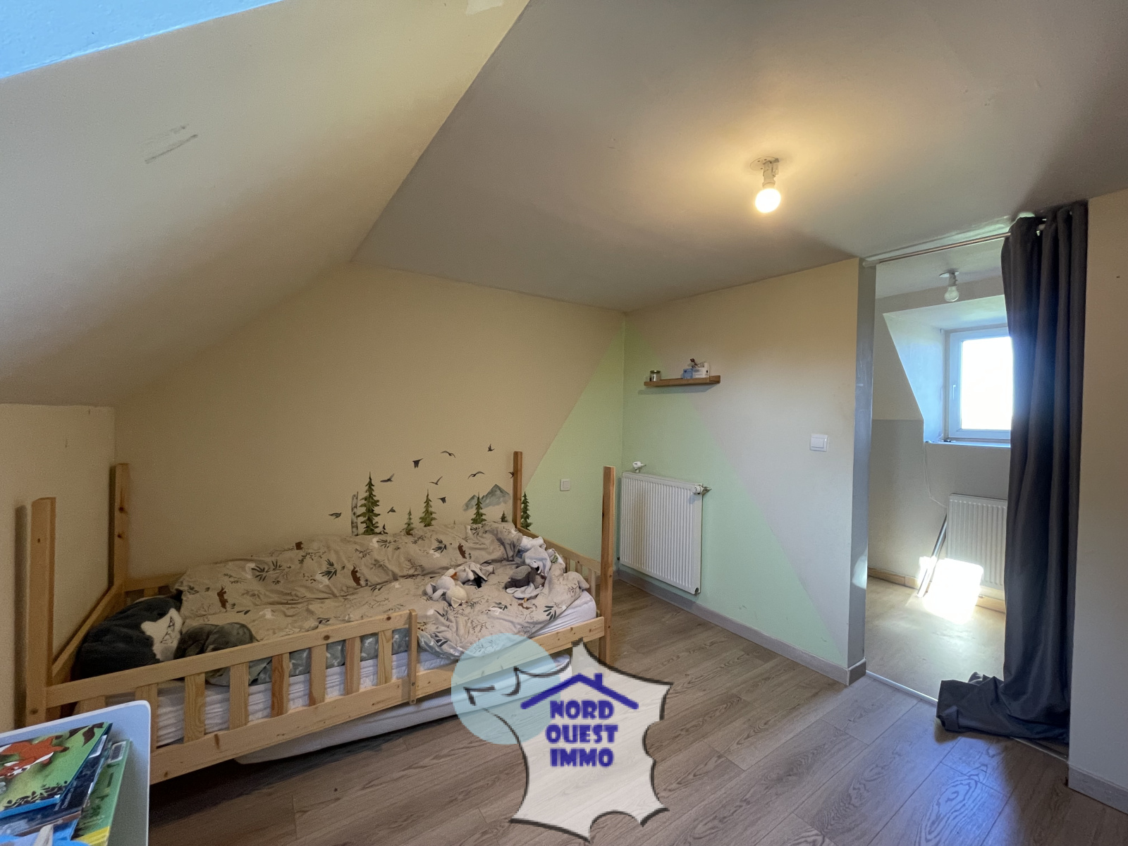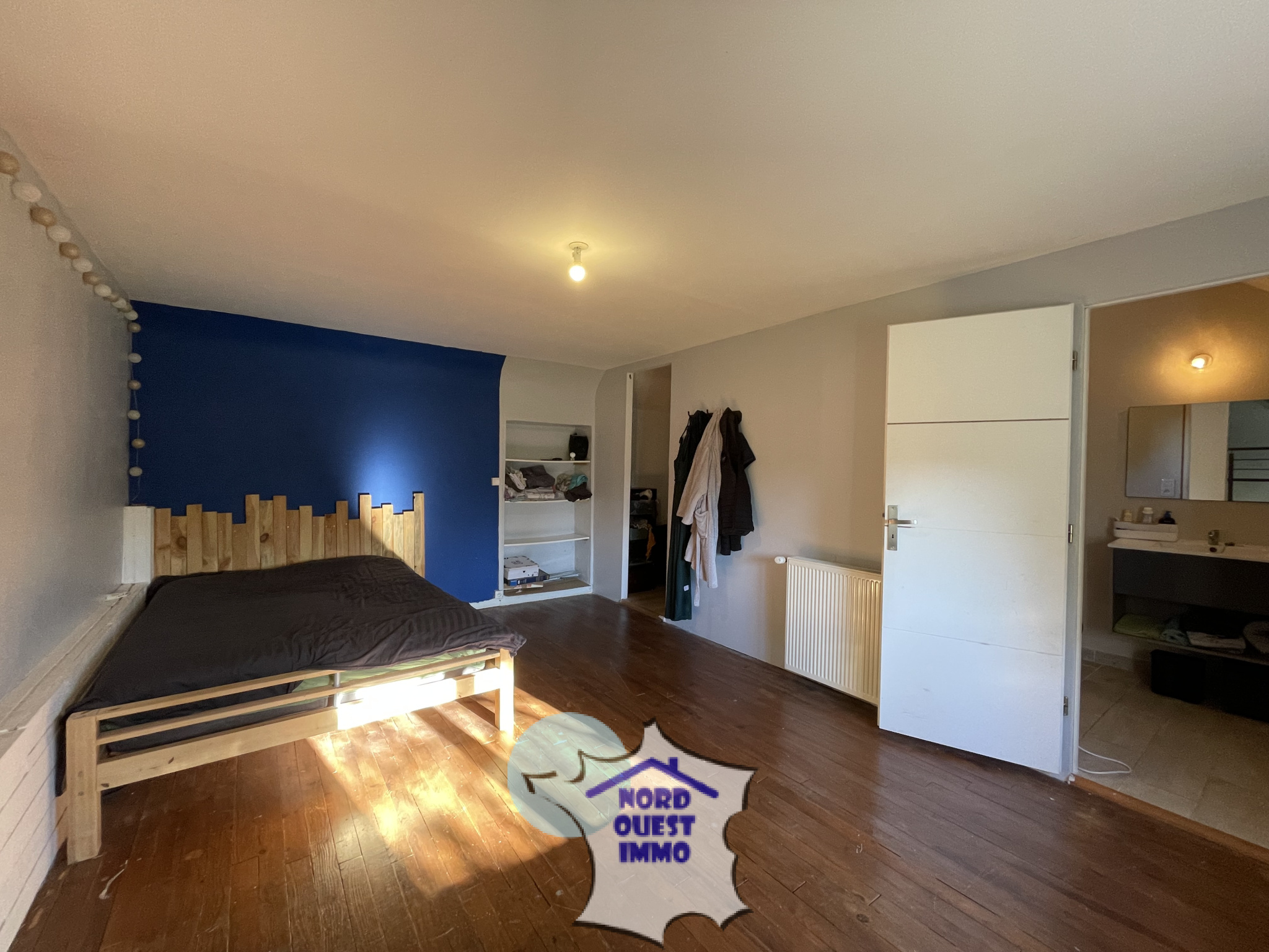 A l'étage: un palier desservant deux pièces sous rampants pouvant faire office de chambres (11.31m², 8.45m²) et une suite parentale avec salle de bains et dressing (26m²).
