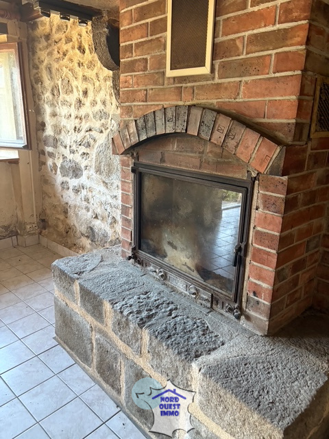 Pièce de vie avec cheminée insert (21.80 m²), un dégagement(1.10 m²), un wc avec salle d'eau(4.61 m²), un autre couloir(1.35 m²) et une pièce (7.94 m²).